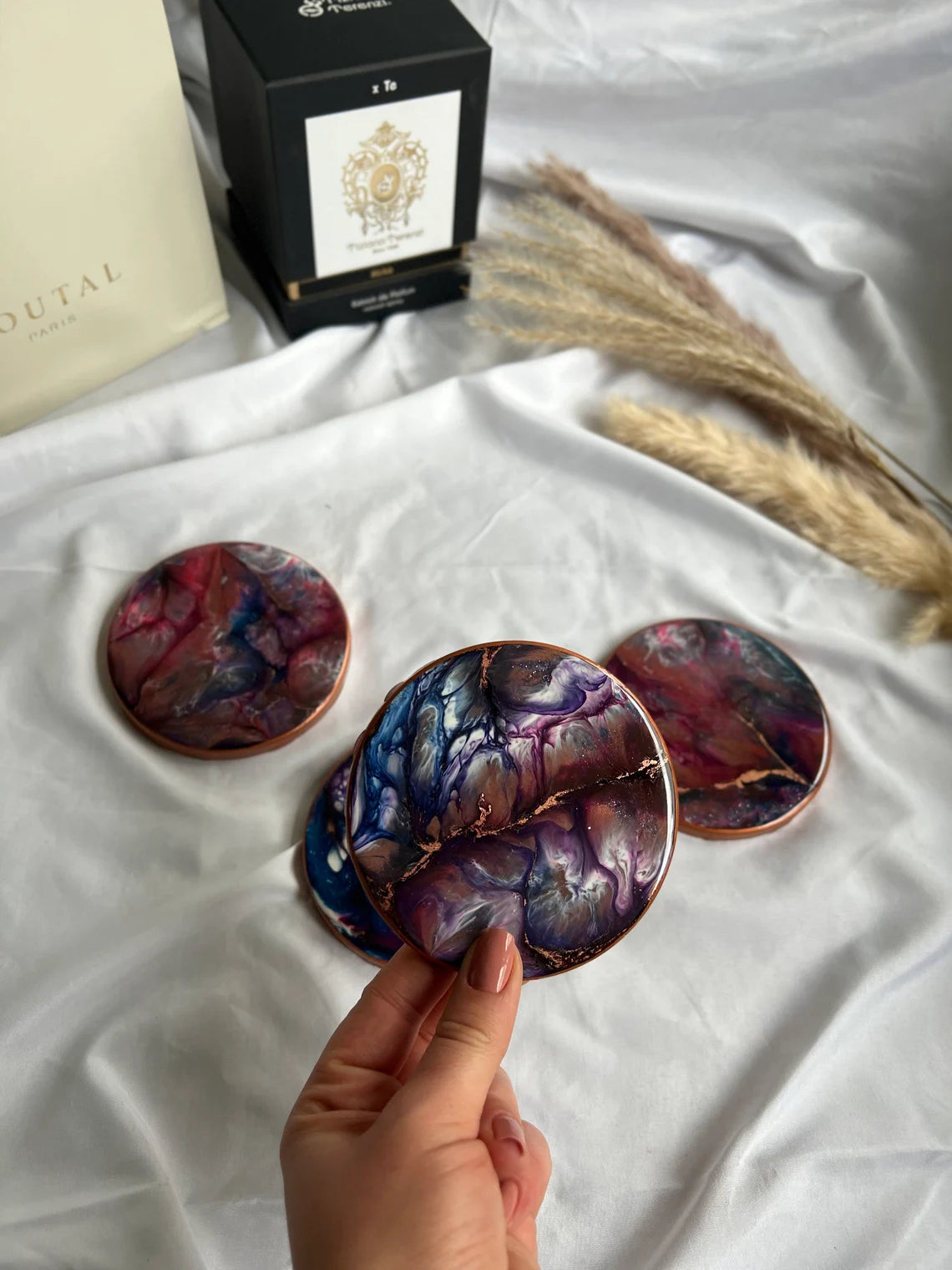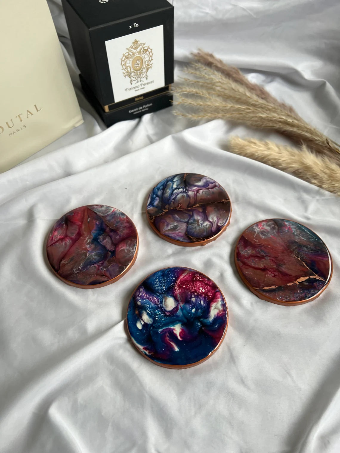 Resin Coaster 4er-Set | Universum | Kupfer Details