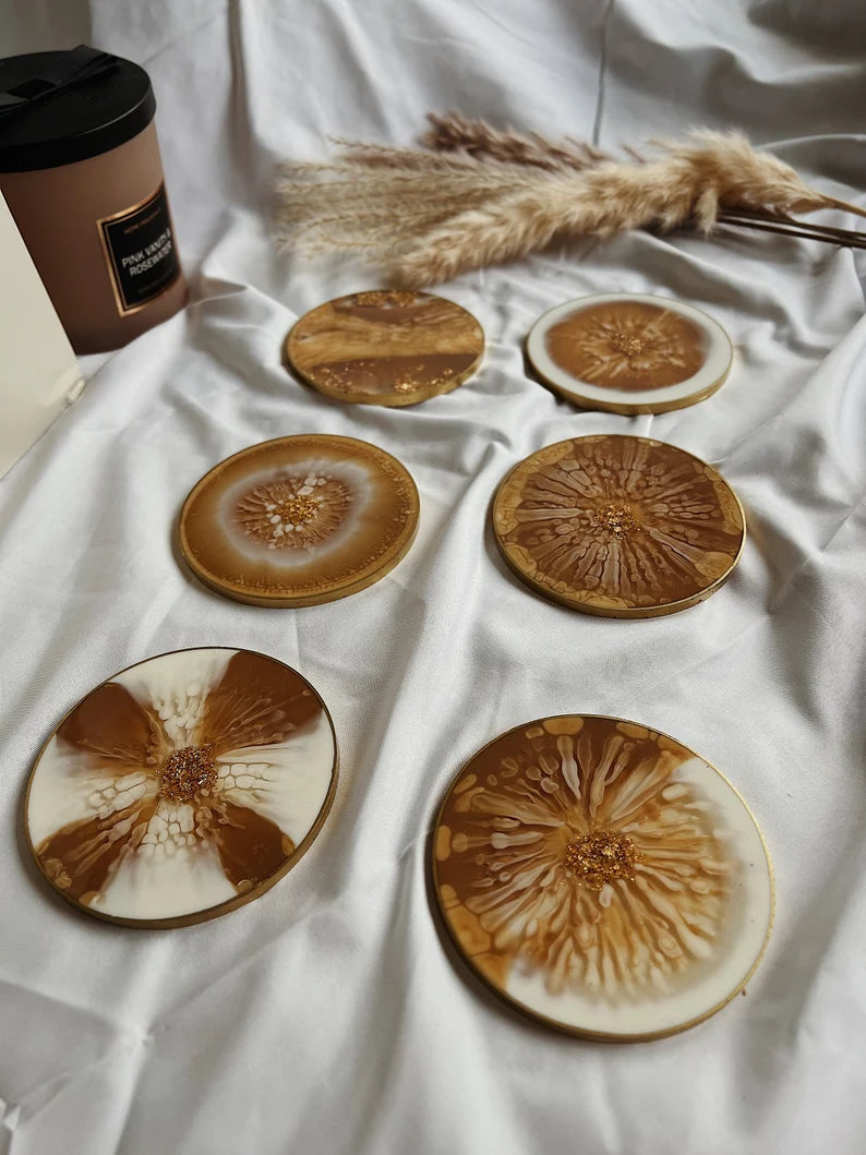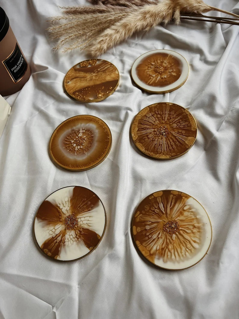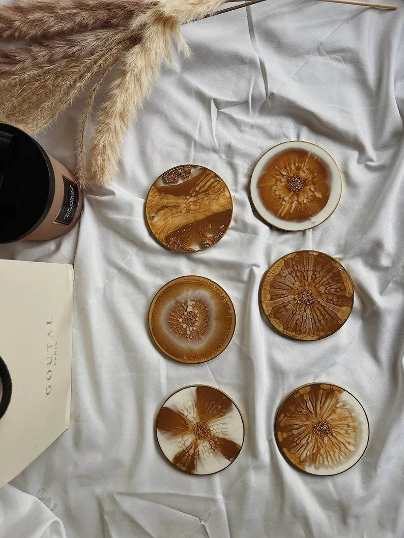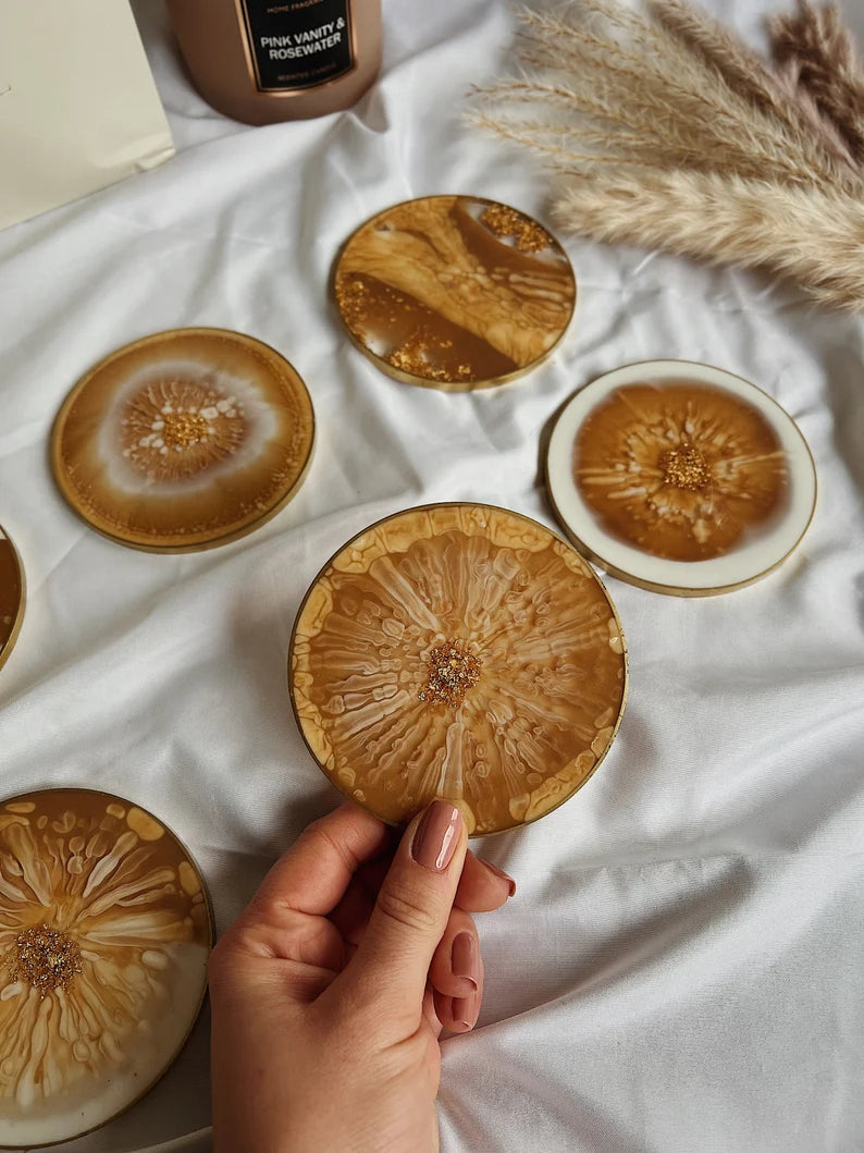 Resin Untersetzer Set rund | Mix & Match | Beige weiß Gold |